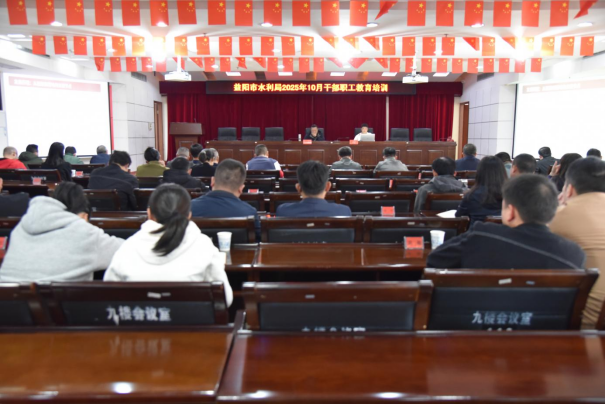 10月24日下午,市水利局组织开展2025年10月干部职工学习教育培训,局机关全体干部职工和水管会、砂管办全体人员,储备中心班子成员以及城区外局直单位负责人参加,局党组成员、副局长邓云辉主持会议。